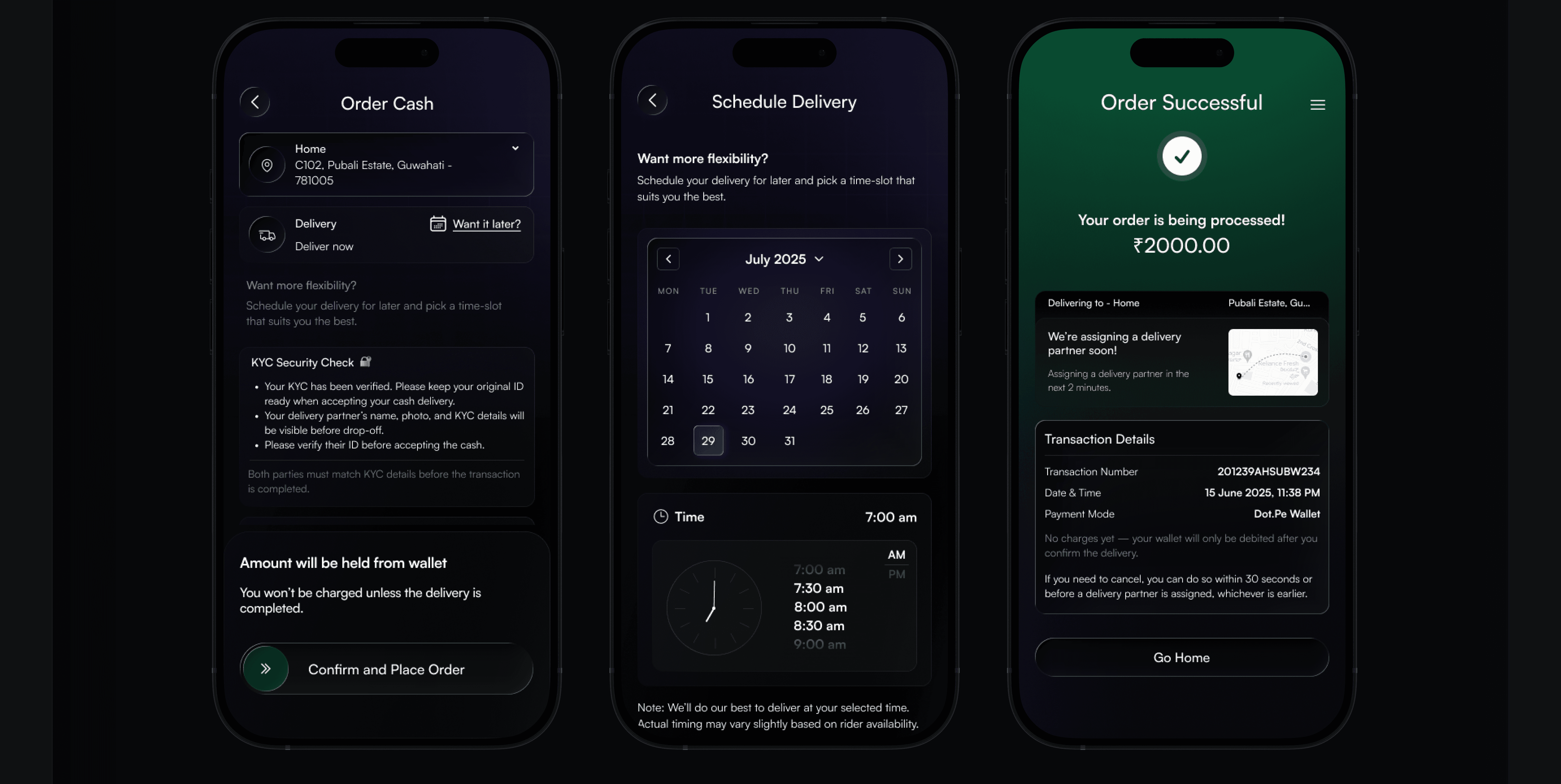 Design a cash-first fintech experience that removes friction, builds trust, and makes cash deliveries effortless for an underserved audience still dependent on cash in a rapidly digital world.